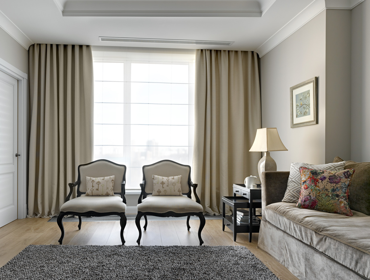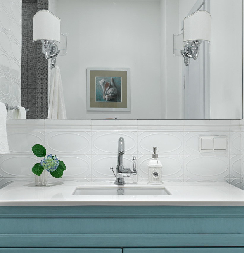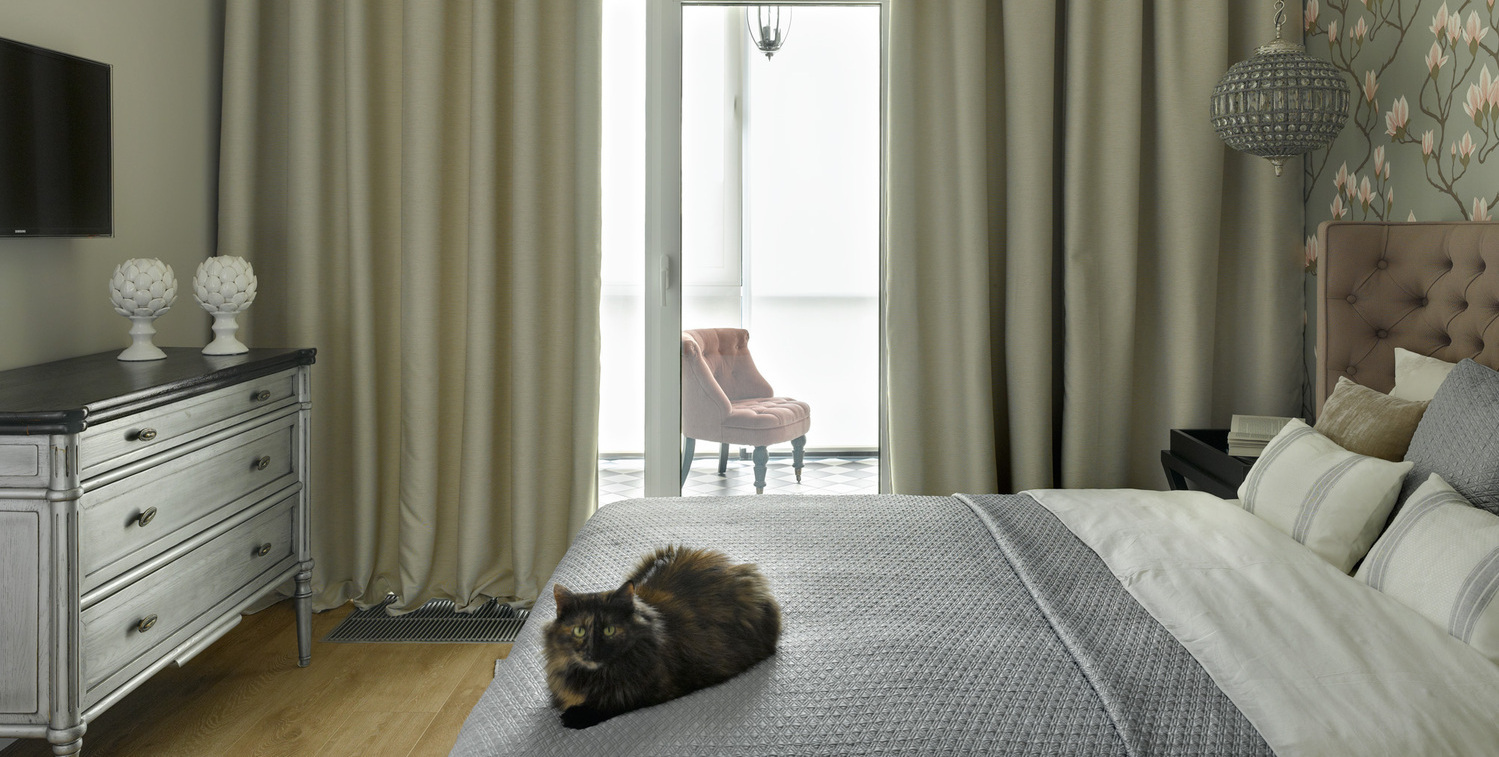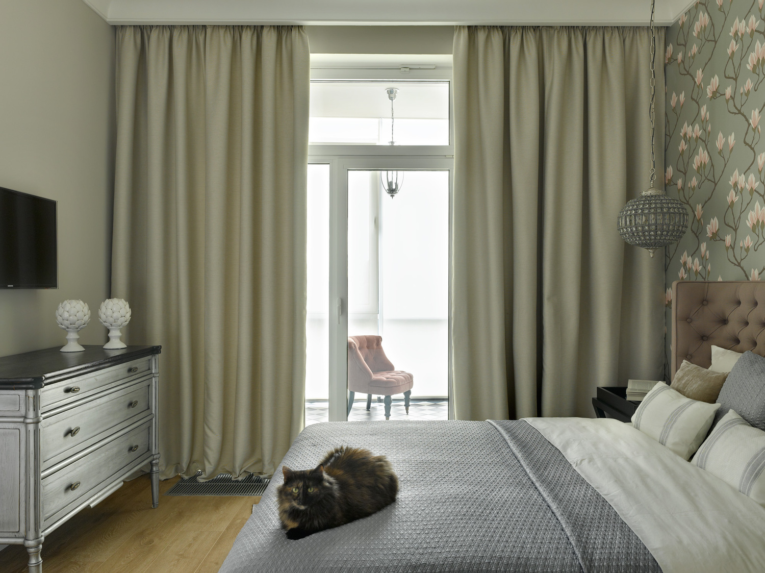 Квартира в стиле современной классики с ноткой французского гламура. Хозяйка - любительница бежево-серых цветов, натурального дерева и кошек. Как во всех наших интерьерах, мы делаем главный акцент на правильном практичном планировочном решении. И далее уже декорирование дополнительно подчеркивает достоинства квартиры. Простые современные формы в контрасте с классическими подчеркивают современную стилевую направленность пространства. Хрусталь, бархатная обивка мягкой мебели, зеркала, графические рисунки на плитке, нежные обои в спальне, благородные цвета дерева создают французский шик.