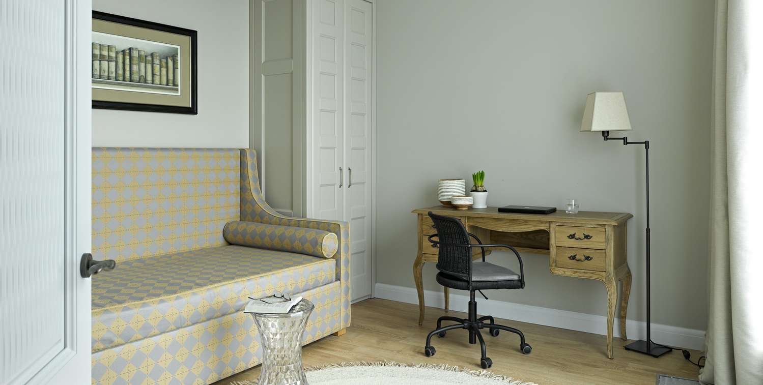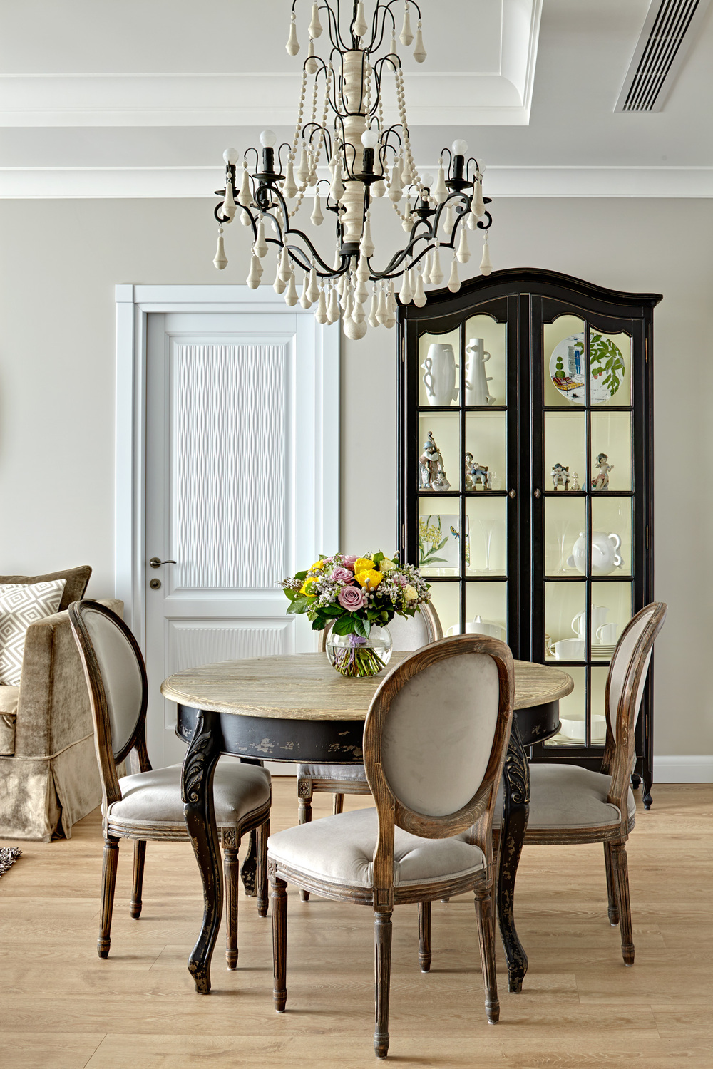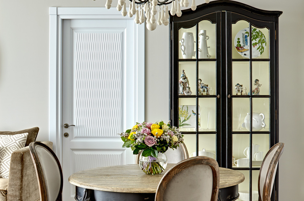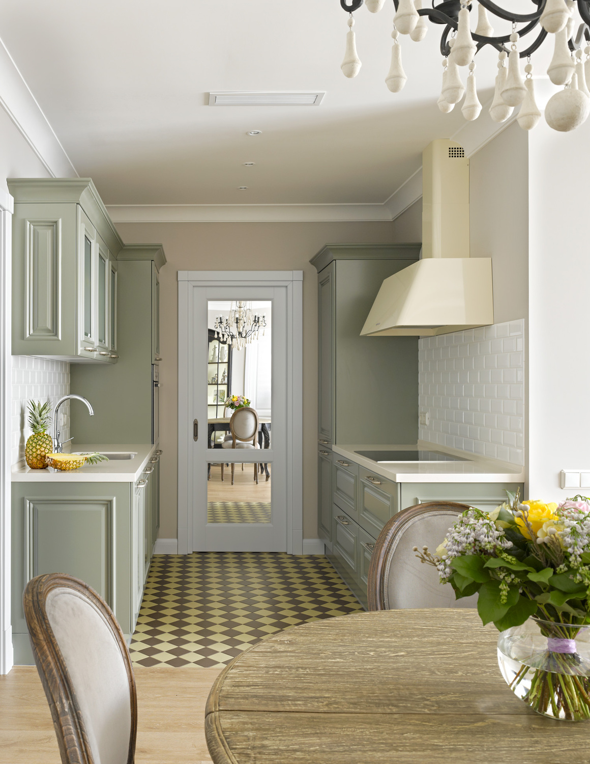 Квартира в стиле современной классики с ноткой французского гламура. Хозяйка - любительница бежево-серых цветов, натурального дерева и кошек. Как во всех наших интерьерах, мы делаем главный акцент на правильном практичном планировочном решении. И далее уже декорирование дополнительно подчеркивает достоинства квартиры. Простые современные формы в контрасте с классическими подчеркивают современную стилевую направленность пространства. Хрусталь, бархатная обивка мягкой мебели, зеркала, графические рисунки на плитке, нежные обои в спальне, благородные цвета дерева создают французский шик.