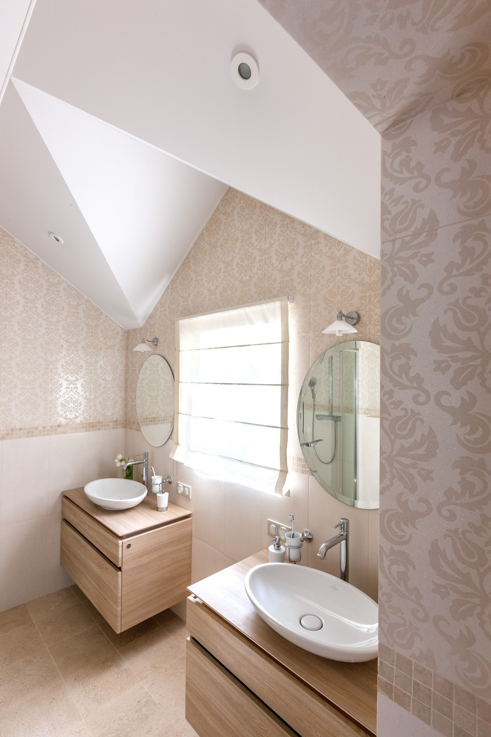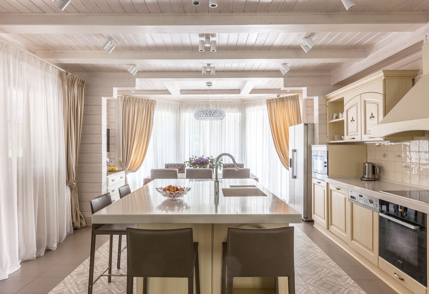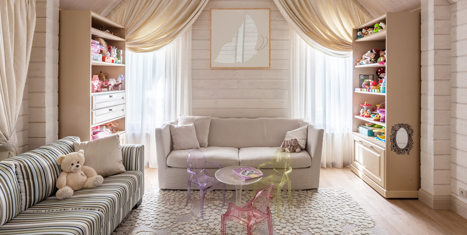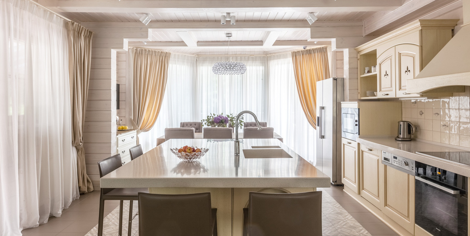 Атмосферный вневременной стиль этого дома из клееного бруса в Подмосковье был создан для молодой семьи. Перед нами стояла задача использовать весь потенциал существующего дома для новых хозяев, превращая его в оазис гостеприимства, спокойствия и элегантности. Мы приглушили яркий натуральный цвет бруса, осветлив общий тон, при этом мы не перекрыли естественный рисунок дерева. По цветам интерьера мы ориентировались на песчаные оттенки прибрежной природы, использовали травертин в отделке стен, выбирали натуральные оттенки деревянных покрытий, сочетали мягкие велюровые и льняные ткани.